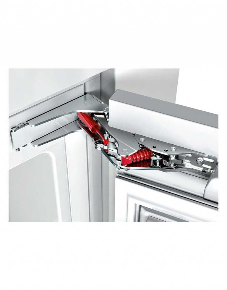 فریزر دوقلو توکار بوش KIR81AF30-GIN81AE30 یکی از دستگاه های توکار بی رقیب در بازار لوازم خانگی یخچال فریزر دوقلو توکار بوش است که دارای تکنولوژی های به روزی می باشد. نصب این دستگاه ها به صورت توکار است و با نصب این دستگاه آشپزخانه ای مدرن و مینیمال خواهید داشت. از آن جایی که این یخچال فریزر دوقلو دارای فیلتر هوا می باشد مواد غذایی به هیچ عنوان بو نمی گیرند. کد یخچال این دستگاه KIR81AF30 و کد فریزر آن GIN81AE30 می باشد و جزو دستگاه های سری 6 ساخت آلمان است. بدنه اطراف دستگاه و حتی درب آن بی رنگ و از جنس فلز می باشد که با نصب به هیچ عنوان رنگ بدنه و درب قابل مشاهده نیست. یکی از نکات مهم قبل از خریداری دستگاه های توکار، ابعاد فضای مورد نظر است تا هنگام نصب به مشکلی برنخورید. رده مصرف انرژی این یخچال فریزر دوقلو توکار بوش ++A و میزان مصرف انرژی سالیانه یخچال 116 کیلووات ساعت در سال و میزان مصرف انرژی سالیانه فریزر 243 کیلووات ساعت در سال است. ابعاد یخچال فریزر دوقلو توکار بوش مدل KIR81AF30-GIN81AE30 به صورت مجزا به شرح زیر می باشد: ارتفاع 177.2 سانتی متر عرض 55.8 سانتی متر عمق 54.5 سانتی متر عرض یخچال توکار بوش و فریزر آن در کنار هم 112 سانتی متر می باشد. یخچال توکار بوش مدل KIR81AF30-GIN81AE30 جهت باز شدن درب یخچال دوقلو توکار بوش به سمت راست می باشد که ظرفیت آن در حدود 319 لیتر است. بخش بندی فضای داخلی یخچال توکار بوش به گونه ای است که می توانید موادغذایی را به راحتی داخل آن قرار دهید. 7 طبقه شیشه ای نشکن و ایمن در یخچال توکار به کار رفته که 6 طبقه آن دارای قابلیت تنظیم ارتفاع است. علاوه بر طبقات یک طبقه فلزی مخصوص قرار دادن بطری در این دستگاه تعبیه شده که مسلماً فضای بیشتری خواهید داشت. دو طبقه از این طبقات دارای ویژگی Easy access هستند که به راحتی می توانید به سمت بیرون بکشید تا به محتویات آن دسترسی داشته باشید. علاوه بر طبقات به کار رفته یخچال فریزر دوقلو توکار بوش دارای دو کشو از جنس شیشه حرارت دیده و شفاف می باشد که محتویات داخلی آن قابل مشاهده است. یکی از این کشوها به ویژگی Vita Fresh Plus مجهز می باشد که با تنظیم مقدار رطوبت می توانید میوه ها و سبزیجات را همانند روز اول تازه و با طراوت نگه دارید. یخچال توکار بوش مجهز به نور LED می باشد که روشنایی بسیار خوب و یکنواختی را برای داخل یخچال ایجاد می کند. این نوع لامپ ها نسبت به لامپ های معمولی برق کمتری استفاده می کنند و دارای دوام و طول عمر بالایی می باشد. یخچال فریزر دوقلو توکار بوش مدل KIR81AF30-GIN81AE30 مجهز به عملکرد فوق العاده خنک کننده Super Cooling می باشد و قبل از اینکه اقدام به خرید موادغذایی و میوه و سبزیجات کنید، امکان فعال کردن این قابلیت وجود دارد تا دمای یخچال در مدت زمان کوتاهی کاهش پیدا کند که شرایط برای نگه داری هر چه بهتر مواد غذایی آماده باشد. این قابلیت فقط با فشار دادن یک دکمه فعال می شود، به منظور جلوگیری از مصرف برق غیرضروری، عملکرد به طور خودکار پس از تقریباً 6 ساعت به حالت اولیه برمیگردد. فریزر توکار بوش مدل GIN81AE30 درب فریزر توکار بوش به سمت چپ باز می باشد و ظرفیت 212 لیتری دارد. این فریزر توکار مجهز به 7 کشو بزرگ و جادار است که دو کشوی آن به صورت Big Box هستند و می توانید داخل آن مواد غذایی با حجم بالا را نگه دارید. این نکته قابل ذکر است که ارتفاع کشوها در حدود 26 سانتی متر می باشد. این کشوها دارای ویژگی Vario Zone هستند که می توانید تمام قفسه های شیشه ای را به راحتی جدا کنید تا فضای بیشتری داشته باشید. یکی از قابلیت های فریزردوقلو توکار بوش No Frost است که از گردش یکنواخت هوای سرد خشک در داخل فریزرجلوگیری می کند از این رو به هیچ عنوان بر روی دیواره ها و کشوها برفک ایجاد نمی شود. این فریزر توکار بوش مجهز به Super Freeze است که و در سریع ترین زمان ممکنه مواد غذایی فریز می شوند از این رو ویتامین های آن به خوبی حفظ می شود.