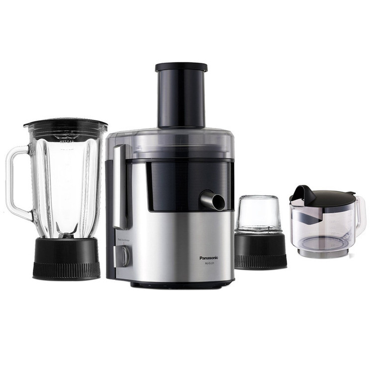 آبمیوهگیری پاناسونیک مدل «MJ-DJ31» از محصولات پرفروش و پرطرفدار این برند است. این دستگاه در کنار آبمیوه گیری میتواند با اضافه شدن دو قطعهی دیگر به مخلوط کن و آسیاب هم تبدیل شود. دستگاه آبمیوهگیری پاناسونیک مدل MJ-DJ31 از تیغهها و فیلتر استیل ضدزنگ بهرهمند است که بهخوبی فرآیند آبگیری را انجام میدهند. زاویهی تیغهها با طراحی ویژه پاناسونیک، راندمان دستگاه را به نحو چشمگیری بالا میبرد. همچنین، تیغه و فیلترهای این آبمیوه گیر قابلشست و شو هستند و به راحتی تمیز میشوند. پس از انجام فرآیند آبگیری، تفالههای میوهها به مخزن تفاله منتقل شده و آبمیوهی طبیعی و سالم در جهت مخالف به ظرف مخصوص آبمیوه منتقل میشود. طراحی این دستگاه به گونهای است که چکهای از دستگاه صورت نمیگیرد و محل استفاده را کثیف نمیکند. آبمیوه گیری پاناسونیک مدل MJ-DJ31 از دو سرعت مختلف بهره میبرد که توسط یک پیچ تنظیم قابل تغییر و انتخاب هستند. قرارگیری پارچ مخلوط کن با حجم بالا روی این دستگاه، قابلیتهای آن را افزایش داده و مواد غذایی را به خوبی خرد و مخلوط میکند. افزونهی دیگر این دستگاه آسیاب آن است که با قدرت تیغهها میتواند مواد بسیاری مانند زعفران، انواع مغز آجیل و مواردی از این قبیل را خرد کرده و به پودر تبدیل کند. استفاده از پایههای ضد لغزش مانع از تکان و جابهجایی دستگاه حین فعالیت میشود.