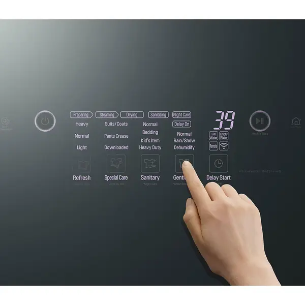 ال جی برای ظاهر این محصول سنگ تمام گذاشته است. بدنهای باریک با ارتفاع بلند و خطوط ساده که در نگاه اول بیشتر شبیه یک کمد لوکس یا آینه قدی بهنظر میرسد تا یک دستگاه هوشمند مراقبت از لباس. آینه تمامقدی که در درب جلو کار شده، علاوه بر زیبایی، کارایی بالایی هم دارد؛ چرا که میتوانید لباس را از دستگاه خارج کرده، بلافاصله پرو کرده و مطمئن شوید همهچیز مرتب است. پنل کنترلی دستگاه بهصورت لمسی و کاملاً مینیمال طراحی شده و بهجای دکمههای فیزیکی، از نمایشگر دیجیتال استفاده شده که جلوهای مدرن به کار میدهد.