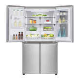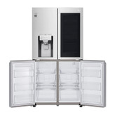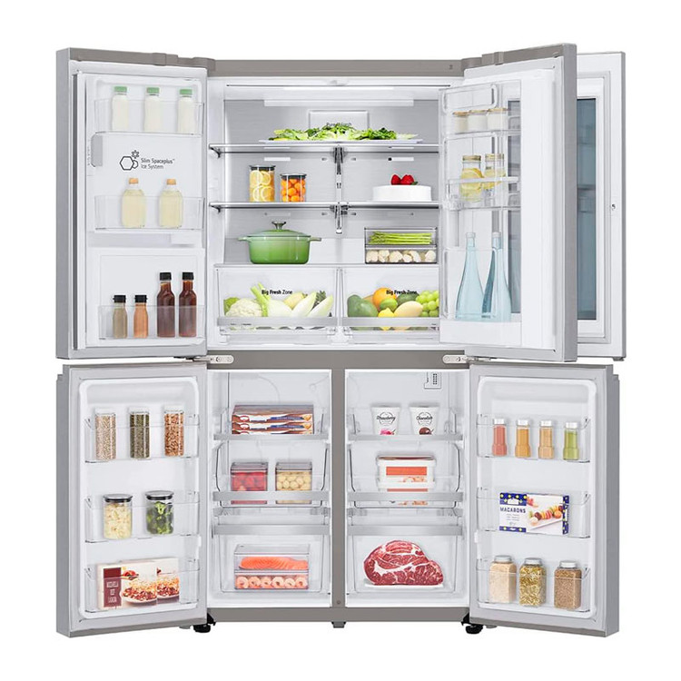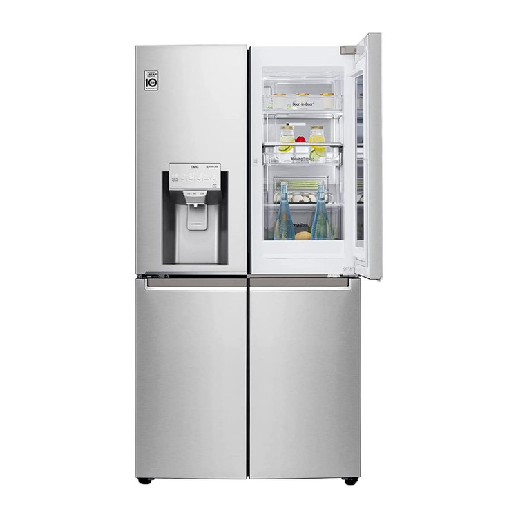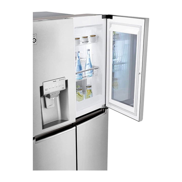 پنل Instaview Door-in-Door پنجرهای به سمت یخچال است که تنها با دو بار ضربه زدن به در، روشن میشود و شفاف خواهد شد، بنابراین بدون اینکه نیاز به باز کردن درب یخچال باشد میتوانید داخل آن را مشاهده کنید. در واقع این بخش از هد رفتن انرژی یخچال و باز شدن درب به دفعات مکرر جلوگیری خواهد کرد. شما میتوانید شاهد این قابلیت بر روی یخچال ساید X945 ال جی باشید که زیبایی آن را دو چندان نموده است. این یخچال فریزر به صورت بالا پایین طراحی شده است بدین منظور که قسمت بالایی را یخچال و قسمت پایینی را فریزر تشکیل داده است. در داخل یخچال چندین قفسه با دوام و استحکام بالا وجود دارد که بستری امن را برای نگهداری مواد غذایی فراهم خواهند کرد.