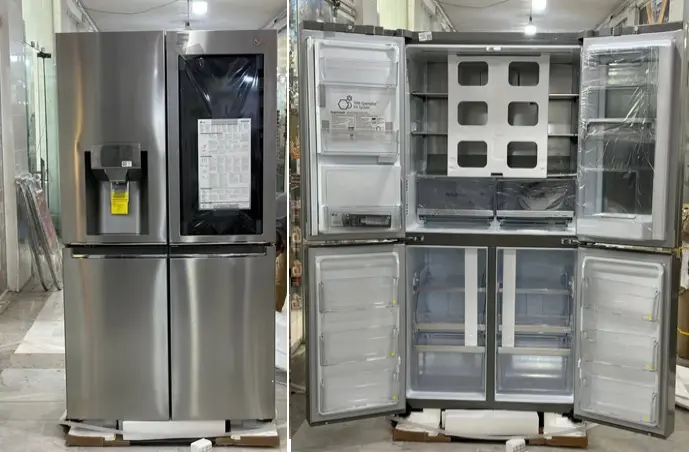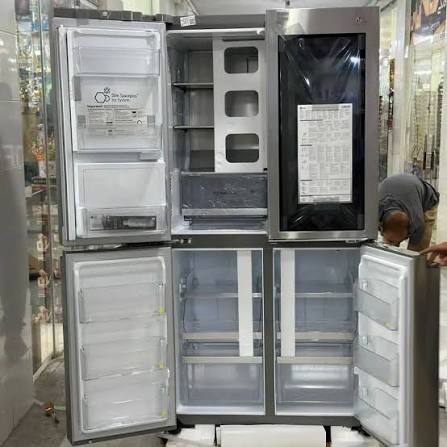 پنل Instaview Door-in-Door پنجرهای به سمت یخچال است که تنها با دو بار ضربه زدن به در، روشن میشود و شفاف خواهد شد، بنابراین بدون اینکه نیاز به باز کردن درب یخچال باشد میتوانید داخل آن را مشاهده کنید. در واقع این بخش از هد رفتن انرژی یخچال و باز شدن درب به دفعات مکرر جلوگیری خواهد کرد. شما میتوانید شاهد این قابلیت بر روی یخچال ساید X945 ال جی باشید که زیبایی آن را دو چندان نموده است. این یخچال فریزر به صورت بالا پایین طراحی شده است بدین منظور که قسمت بالایی را یخچال و قسمت پایینی را فریزر تشکیل داده است. در داخل یخچال چندین قفسه با دوام و استحکام بالا وجود دارد که بستری امن را برای نگهداری مواد غذایی فراهم خواهند کرد.