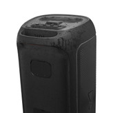 اسپیکر پرتابل و بلوتوثی Ultimate نسل جدید اسپیکرهای سری PartyBox از برند محبوب جی بی ال است. این اسپیکر قابل حمل با درایورهای بهبود یافته و سخت افزار بروز شده، تجربهی صوتی متفاوتی را به شما ارائه میدهد. همچنین طراحی ظاهری زیبا و چشمگیر آن همراه با بدنهی ضدآب و مقاوم ، شما را با سطح جدیدی از سیستمهای صوتی پرتابل آشنا میکند. دلیل نامگذاری این اسپیکر ظرفیت بالای صدای تولیدی و آخرین و به روزترین تکنولوژیهای نوری و سیستماتیک این محصول است همچنین برای اتصال این اسپیکر به دستگاههای پخش مانند گوشی موبایل یا پلیرها ، از تکنولوژی بلوتوث استفاده شده است تا بتوانید به راحتی به این اسپیکر متصل شده و به صورت بی سیم موسیقی مورد علاقه خود را بشنوید. جی بی ال در سری جدید اسپیکر Ultimate از بلوتوث نسخه 5.3 که جدید ترین نسخه در حال حاضر است استفاده کرده است و این اسپیکر حرفهای دارای صدای قدرتمند و شفافی است که توسط درایور های جدید و بهبود یافته تولید و پخش میشود. 2 عدد ساب ووفر 242میلی متری(9 اینچی) به همراه 2 عدد بلندگوی مید رنج 120میلی متری(4.5 اینچی) و 2 عدد بلندگوی تیوتر 74 میلی متری(2.75اینچی)در کنار هم تجربهی صوتی جدید و بی نظیری را برای شما فراهم میکنند. در مجموع این محصول قادر است تا صدایی به قدرت 1100 وات RMS را تولید کرده و به گوش شما برساند. بازه فرکانسی قابل پخش در این سیستم صوتی مابین 30 هرتز تا 20000 هرتز است که برای اسپیکری با این ابعاد فوق العاده است. تنظیمات افکتهای صوتی و نوری نیز از جدید ترین نوع بوده و رقص نور و نور پردازی با جزعیات دقیق آهنگ پخش شده هماهنگ میگردد. ورودیهای میکروفن و گیتار هم دارای تنظیمات دقیقی است تا هر آنچه از صوت و تصویر برای برپایی میهمانیهای خود نیاز دارید در کنار هم جمع باشد.با وجود وزن زیاد این محصول،چرخ های تقویت شده آن نسبت به مدلهای قبلی کارایی بهتری در جا به جایی آن در اختیار کاربر قرار می دهند.اتصال تمامی محصولات خانواده PartyBox به هم در این محصول دیده میشود و میتواند تمام کننده ی نیاز صوتی شما باشد.اسپیکر Ultimate برترین محصولی است که واژهی JBL Pro Sound را به تصویر میکشد.