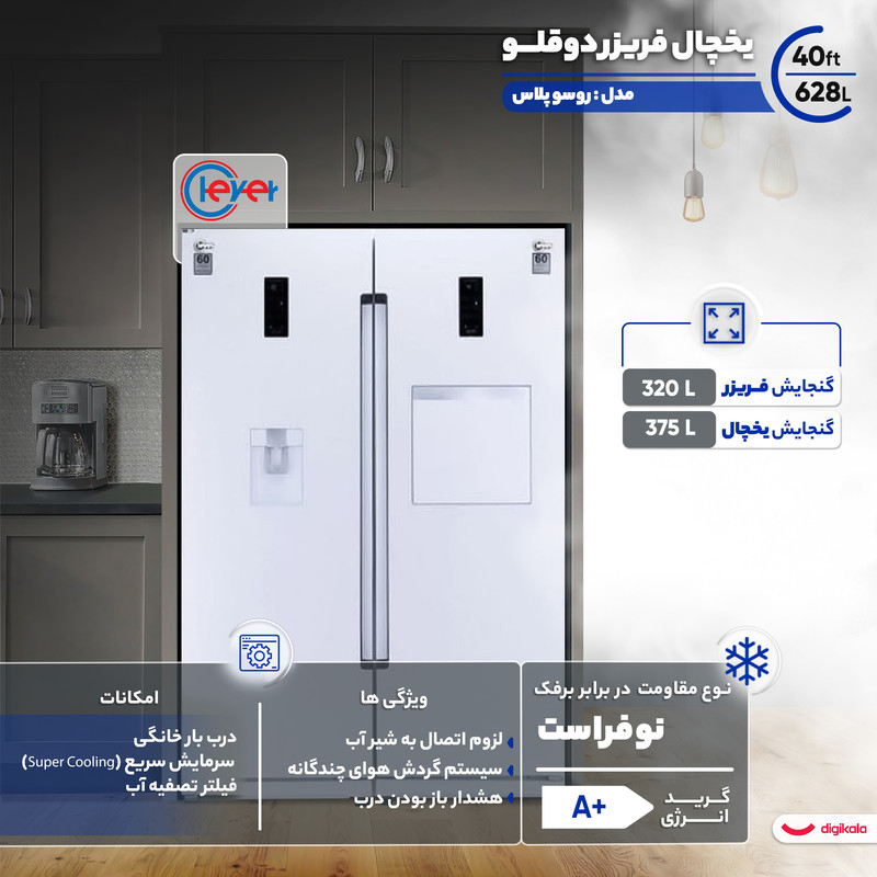 + موارد بیشتریخچال فریزر های دو قلو نوعی متفاوت از یخچال ها هستند. در این مدل ها، یخچال و فریزر از یکدیگر جدا هستند که میتوان آنها را به صورت مجزا در محیط آشپزخانه قرار داد. یخچال فریزر دوقلو کلور مدل روسو پلاس، یکی از مدلهای پیشرفته از یخچال های دوقلو است که دارای سیستمهای پیشرفته کنترل وضعیت یخچال، سیستم ضدبرفک اینورتر و مجهز به یخساز اتوماتیک میباشد؛ کمپرسورهای کم مصرف اینورتر در یخچال فریزر دوقلو روسو پلاس یکی از ویژگیهای مهم این محصول است که باعث میشود راندمان یخچال شما نیز به شدت افزایش پیدا میکند .