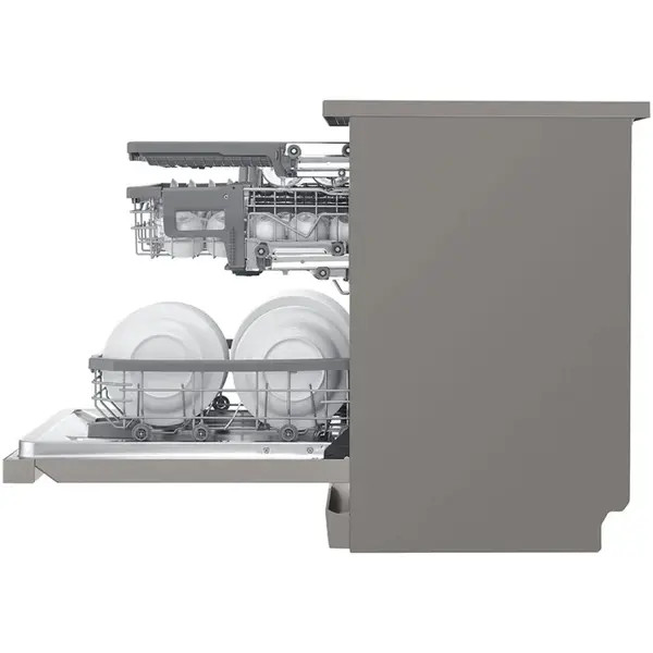 بازوهای آبپاش سهگانه: ظرفشویی ال جی 425 دارای سه بازوی آبپاش چهار پره (Top, Upper, Lower Spray Arms) است که با حرکت همزمان، آب را به تمامی زوایای داخلی دستگاه هدایت میکنند. این بازوها به صورت چرخشی، تمامی نقاط ظروف را پوشش داده و شستشوی کاملی را ارائه میدهند.