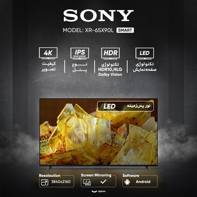 تلویزیون هوشمند سونی XR-65X90L، یک مدل ۶۵ اینچی پیشرفته از سری براویاست که برای ارائهی تجربهای عالی در تماشای فیلم، ورزش و بازی طراحی شده. این تلویزیون با کیفیت تصویر 4K و پردازشگر قدرتمند سونی، انتخابی ایدهآل برای کاربران حرفهای و علاقهمندان به سینمای خانگی است. این دستگاه به صفحهنمایش ۶۵ اینچی IPS با رزولوشن 4K UHD مجهز شده. از جمله قابلیتهای قدرتمند آن میتوان به نرخ نوسازی ۱۲۰ هرتز، عمق رنگ ۱۰ بیتی و پشتیبانی از Dolby Vision، HDR10 و HLG اشاره کرد. فناوریهای پردازش تصویر سونی مانند XR Super Resolution و Dynamic Contrast Enhancer نیز به ارائهی تصویری واضح و با کنتراست بالا کمک میکنند. حضور دو پورت HDMI 2.1 و پشتیبانی از VRR سبب شده تا XR-65X90L برای اجرای بازیهای نسل نهمی با کیفیت 4K و سرعت ۱۲۰ فریم، عملکردی کاملا قابل قبول داشته باشد. سیستم صوتی نوآورانهی Acoustic Multi-Audio با توان خروجی ۳۰ وات و پشتیبانی از Dolby Atmos و DTS، صدایی فراگیر و هماهنگ با تصویر ارائه میدهد. این تلویزیون هوشمند با سیستمعامل اندروید تیوی (نسخه ۱۰) و ۳۲ گیگابایت حافظه داخلی، امکان دسترسی به دنیایی از برنامهها و سرویسهای آنلاین را فراهم میکند و از دستیار صوتی گوگل، AirPlay و HomeKit نیز پشتیبانی میکند. مجموعهی کاملی از پورتها شامل چهار HDMI، دو USB، پورت شبکه، خروجی اپتیکال و هدفون، به همراه وایفای و بلوتوث، اتصالات آن را تشکیل میدهند. سونی XR-65X90L با کیفیت تصویر و صدای عالی، امکانات هوشمند جامع و عملکرد گیمینگ قوی، یک تلویزیون پریمیوم و همهکاره است.