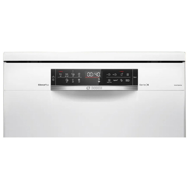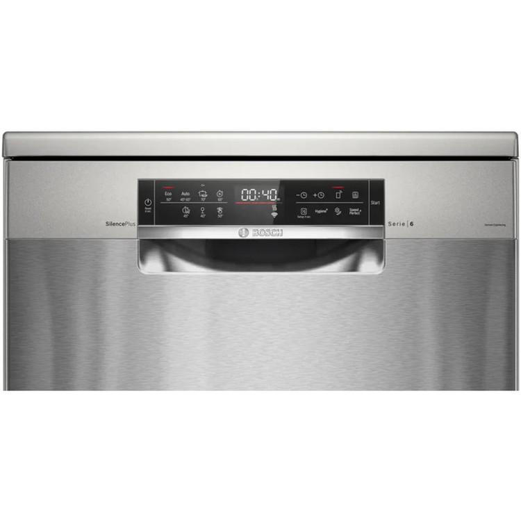 ماشین ظرفشویی ۱۳ نفره بوش مدل SMS6EMW65Q یک دستگاه مبله کارآمد و کممصرف است که برای خانوادههای متوسط تا پرجمعیت طراحی شده و با رده انرژی A++ و مصرف آب تنها ۹.۵ لیتر در هر چرخه، گزینهای مقرونبهصرفه برای استفاده روزانه محسوب میشود. سطح صدای ۴۲ دسیبل، شستوشوی بسیار آرامی را فراهم میکند و امکان استفاده از دستگاه در ساعات شب را نیز بدون ایجاد مزاحمت فراهم میسازد. بدنه آلومینیومی و مخزن داخلی استیل ضدزنگ نیز دوام، بهداشت و مقاومت بالا در برابر رسوب و حرارت را تضمین میکند. در بخش طراحی، ماشین ظرفشویی ۱۳ نفره بوش مدل SMS6EMW65Q به سه طبقه مجزا و بازوهای آبپاش سهگانه مجهز است که باعث توزیع یکنواخت آب در تمام بخشها میشود. قابلیت تنظیم ارتفاع طبقات، امکان قرار دادن ظروف بزرگ مانند قابلمه را فراهم میکند و ظرفیت ۱۳ نفره آن برای شستوشوی حجم قابلتوجهی از ظروف مناسب است. ابعاد استاندارد ۸۴.۵ × ۶۰ × ۶۰ سانتیمتری نیز نصب دستگاه را در بیشتر آشپزخانهها ساده میسازد. وزن ۵۲.۲ کیلوگرمی نیز نشاندهنده ساختار مستحکم و کیفیت بالای مواد استفادهشده در طراحی است. در بخش عملکرد، ماشین ظرفشویی ۱۳ نفره بوش مدل SMS6EMW65Q دارای ۷ برنامه اصلی شامل شستوشوی اقتصادی، سریع، شدید، خودکار و برنامههایی با دمای ۴۰ تا ۷۰ درجه سانتیگراد است. کمترین زمان شستوشو ۶۰ دقیقه تعیین شده و مجموعهای از سنسورهای پیشرفته مانند تشخیص سختی آب، سنسور آلودگی، سنسور تعداد ظروف و سنسور نشتی آب دقت عملکرد بالایی فراهم میکنند. دکمههای لمسی، حالت صرفهجویی مصرف آب، قفل کودک و سیستم عیبیابی هوشمند از دیگر امکانات کاربردی این مدل هستند. در بخش هوشمندی، ماشین ظرفشویی ۱۳ نفره بوش مدل SMS6EMW65Q از اتصال Wi‑Fi و کنترل از طریق اپلیکیشن پشتیبانی میکند و قابلیت تشخیص خرابی و نمایشگر دیجیتال نیز مدیریت دستگاه را سادهتر میسازد. پشتیبانی از قرصهای شوینده و فناوری Heat Exchanger، آکوا سنسور و سیستم حفاظت از شیشه، موجب شستوشوی ایمن ظروف حساس، کریستال و حتی ظروف پلاستیکی میشود.